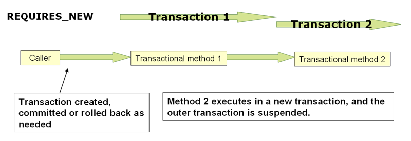 在WebSphere 6.1.0.9及更高版本中,要使用的推荐Spring JTA事务管理器是WebSphereUowTransactionManager。此特殊适配器使用IBM的UOWManager API,该API在WebSphere Application Server 6.1.0.9及更高版本中可用。使用此适配器,IBM正式支持Spring驱动的事务暂停(由PROPAGATION_REQUIRES_NEW启动的暂停和恢复)。