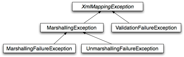 此外,即使基础的O-X映射工具没有这样做,MarshallingFailureException和UnmarshallingFailureException也会在编组和解组操作之间进行区分。