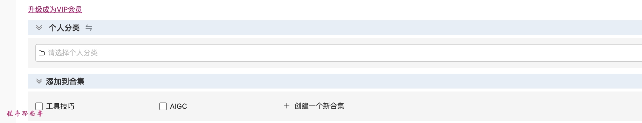 添加到合集的实现方式跟个人分类有些类似。