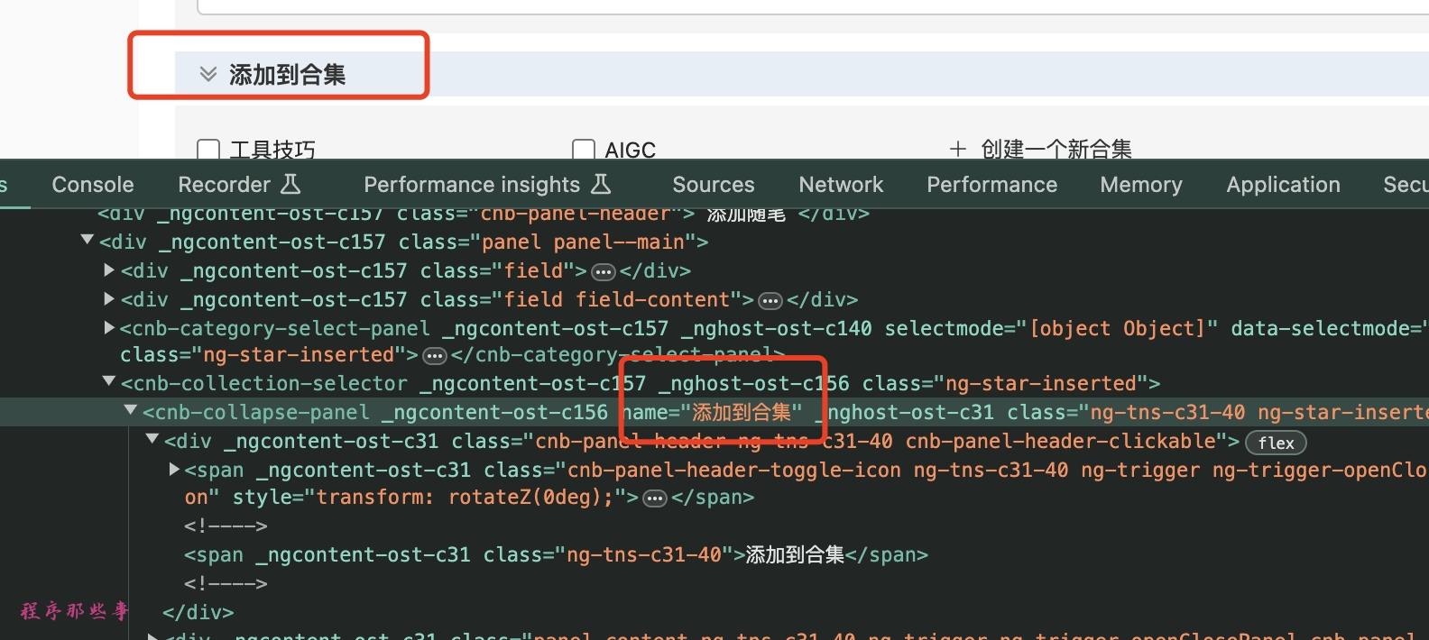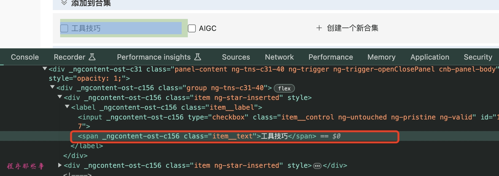 注意,这里如果选择的是包含合集文字的span,如下所示。这个span是不可被点击的。