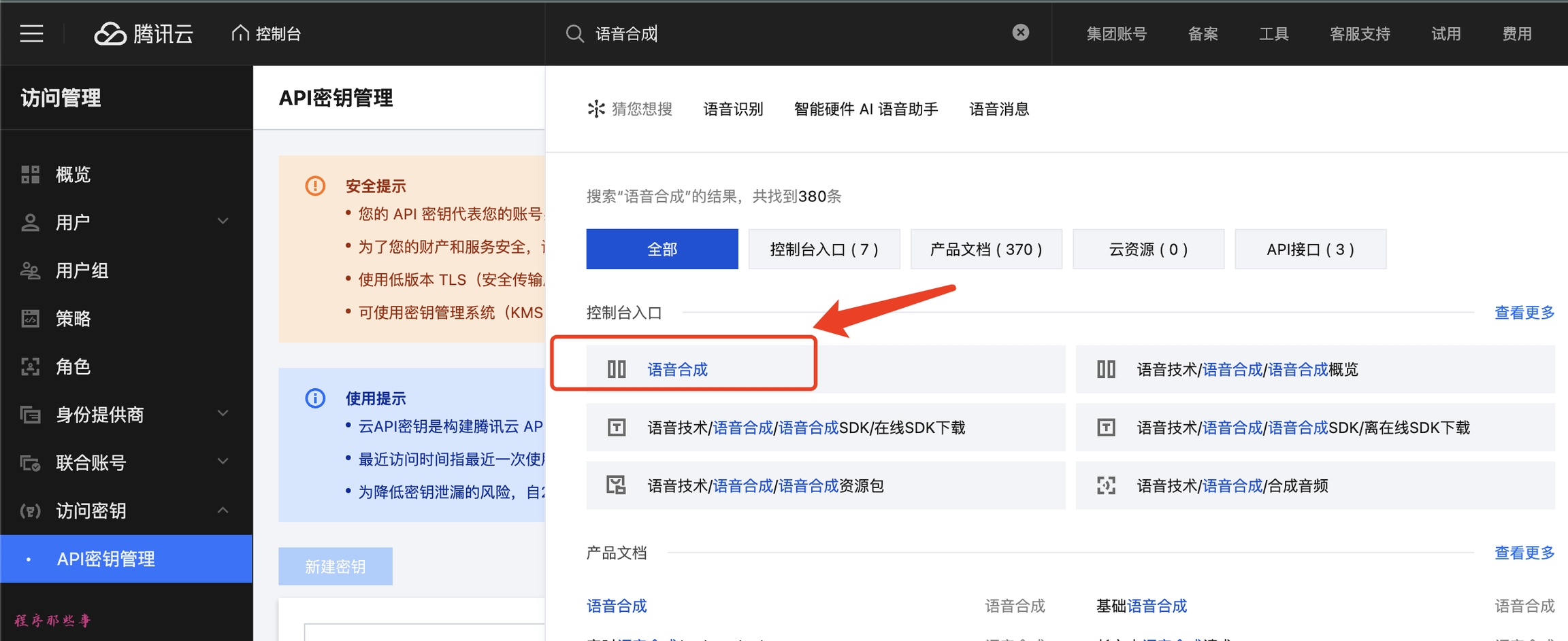 这样,我们在腾讯云的语音合成和语音识别服务就开通好了。
