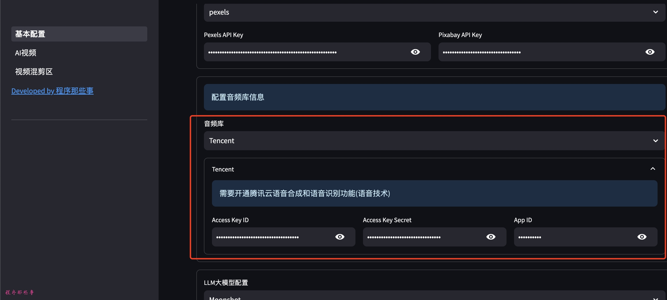 详细介绍如何使用在MoneyPrinterPlus中配置使用腾讯云语音服务,实现AI自动短视频生成。