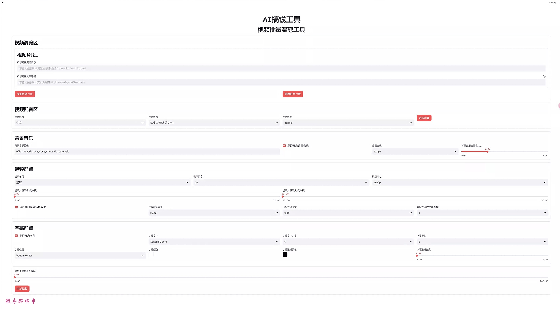 之前开源了MoneyPrinterPlus,可以实现批量混剪视频,一键生成视频和自动发布视频的功能。