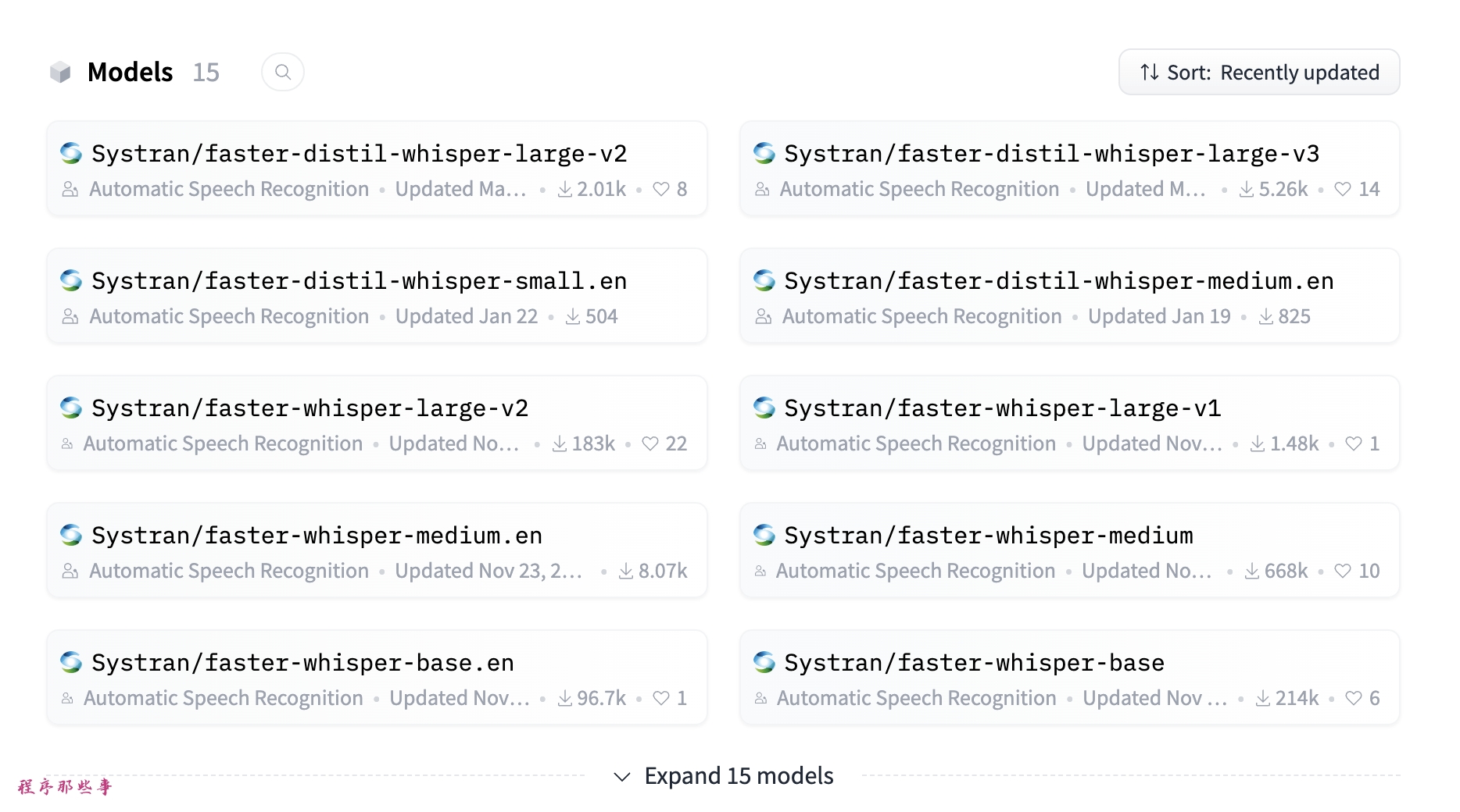 fasterWhisper模型下载地址:https://huggingface.co/Systran