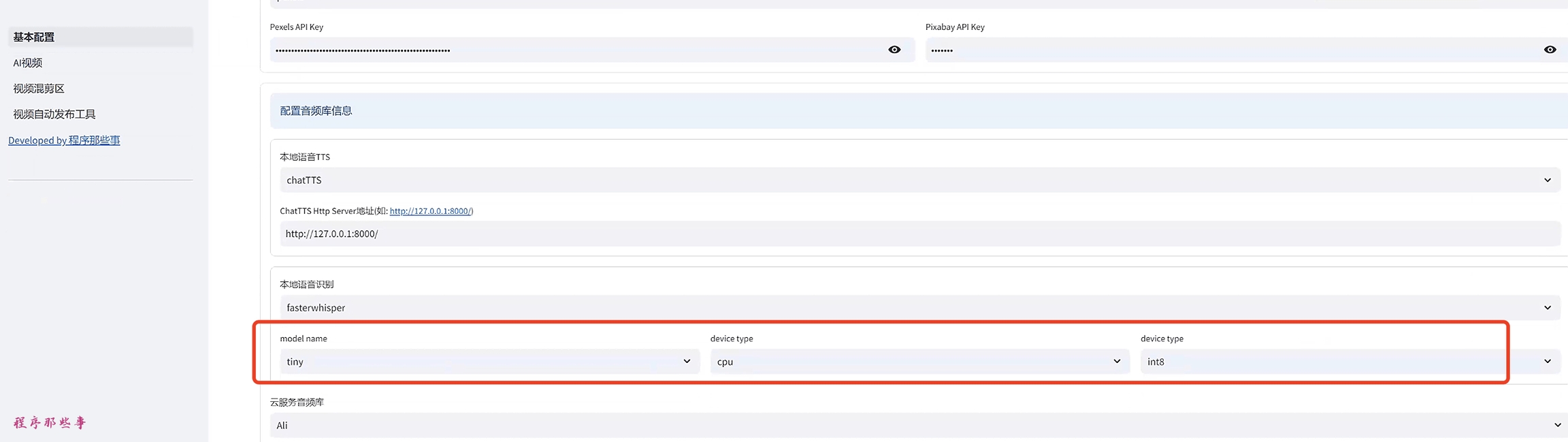 同样的在视频混剪区域,我们也可以选择本地模型,即可使用到fasterWhisper了。