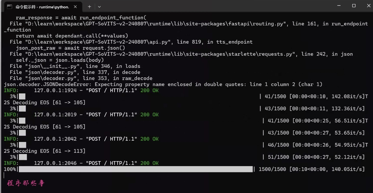 同时,在GPTsoVITS服务的日志文件中,你可以看到一些语音合成的进度。