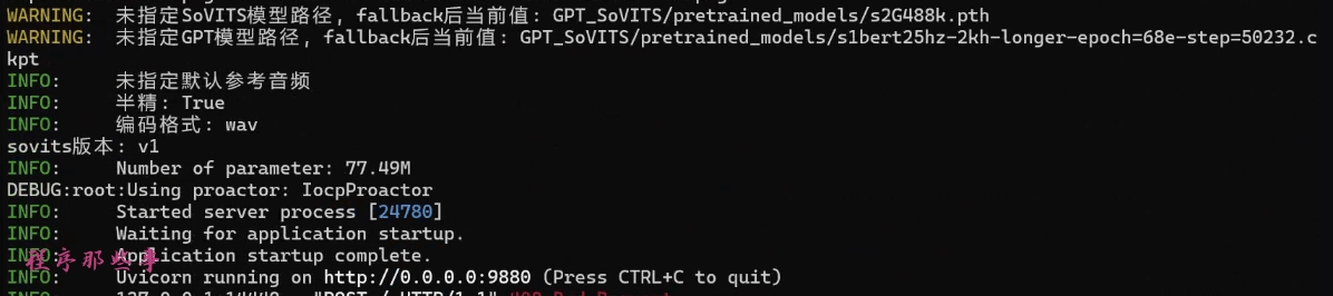 如果下载的是GPT_SoVITS的集合包,那么可以直接执行下面的命令来启动GPT_SoVITS的API: