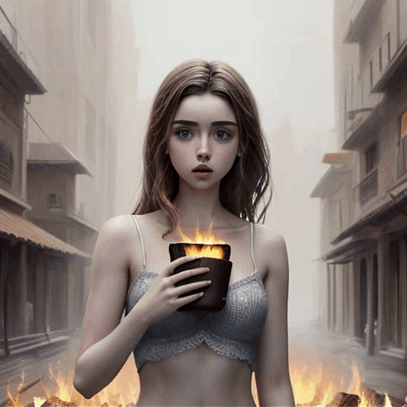 通过关键词混合,你可以实现类似于提示到提示的效果,生成一对高度相似的图像并进行编辑。以下两幅图像是使用相同的提示生成的,除了一个地方不同,那就是使用了apple 和fire混合。种子和步数保持不变。