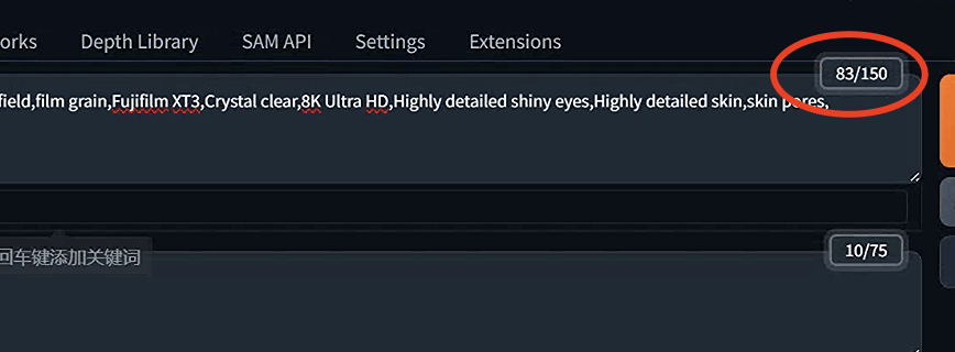 AUTOMATIC1111中的提示限制