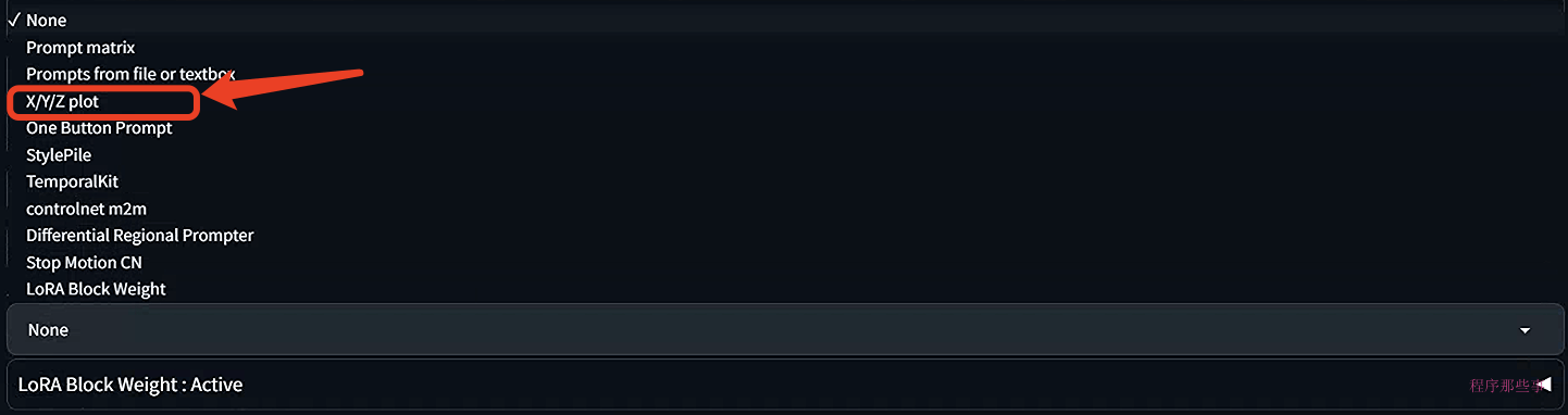 点击web UI下方的script,你会发现一个x/y/z plot的选项。选中他: