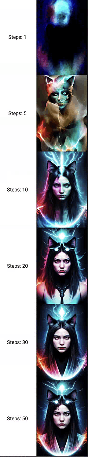 我们生成了一张带有魔力的猫的图片。