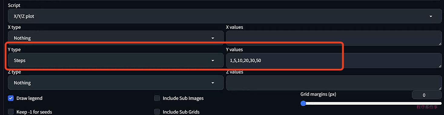 基本上x,y,z就是三个不同的变量,你可以为不同的变量设置不同的值。最后会生成一个grid的合并图片,非常方便我们进行图片效果的对比。