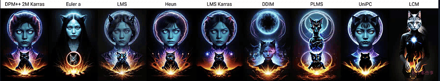 Stable diffusion支持多种采样方法。这些方法仅代表了不同的扩散方程求解方法。它们应该产生相似的结果,但由于数字偏差可能略有不同。然而,由于没有绝对正确的答案——唯一的标准是图像看起来不错,因此您不必过于担心方法的准确性。