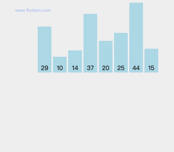 同样的,假如我们有一个数组:29,10,14,37,20,25,44,15,怎么对它进行插入排序呢?