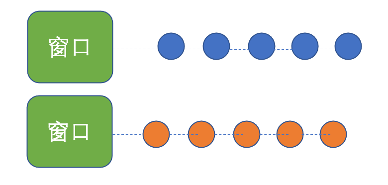 上图表示的就是并发concurrency的情况,一个窗口同时只能处理一个任务,所以两个队伍在争夺窗口这个资源。
