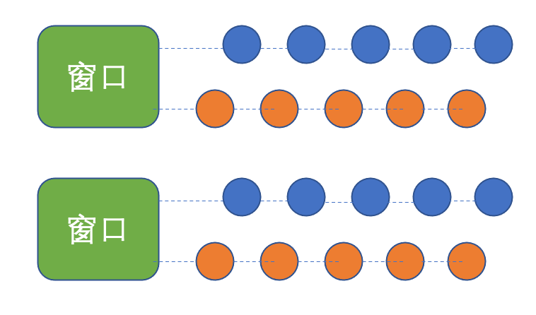 为了更好的描述这个并发问题,假设我们有10个人排成了两支队伍要去打疫苗,结果只有一个打疫苗的窗口。那么一个很可能的策略就是窗口交替给两个队伍的人打疫苗。我们做个图来表示: