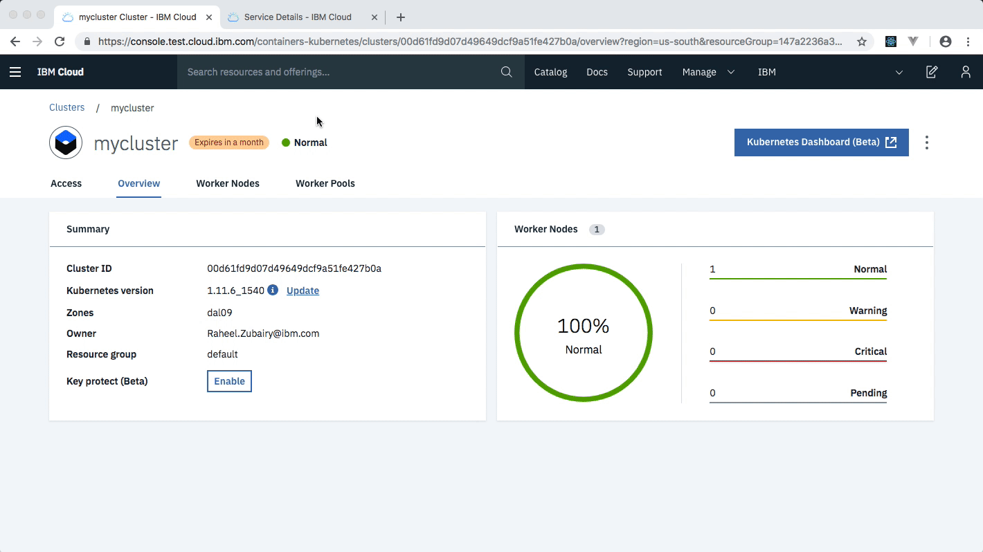 登录IBM Cloud,创建IBM Cloud Kubernetes服务。 您可以在目录中找到该服务。 IBM Cloud提供一个免费集群实例,并在30天后过期。 注意:Kubernetes服务设置可能需要20分钟才能完成。