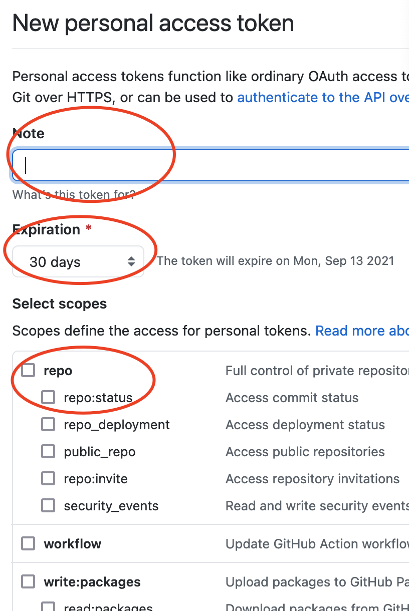 最后,就是token对应的权限了,如果你只是对repository进行操作,选择repo即可。