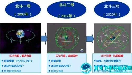北斗系统是通过三步走来建立的,也就是大家经常听说的北斗一号,北斗二号和北斗三号。