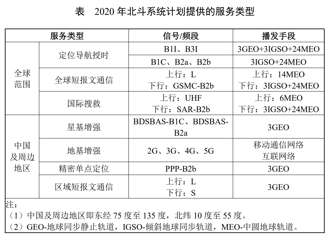 目前,北斗系统服务由北斗二号系统和北斗三号系统共同提供,2020年后将平稳过渡为北斗三号系统为主提供。
