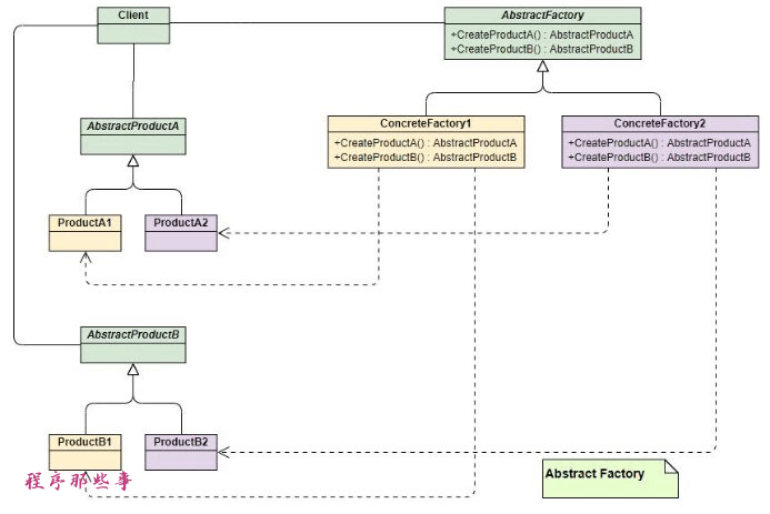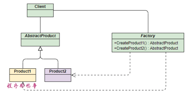 简单⼯⼚模式和⼯⼚⽅法模式不管⼯⼚怎么拆分抽象,都只是针对⼀类产 品,如果要⽣成另⼀种产品,就⽐较难办了!