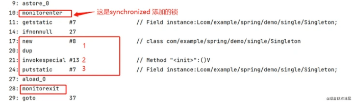 所以经过指令重排序之后,创建对象的执⾏顺序可能为 1 2 3 或者 1 3 2 ,因此当某个线程在乱序运⾏ 1 3 2 指令的时候,引⽤变量指向堆内存 空间,这个对象不为null,但是没有初始化,其他线程有可能这个时候进