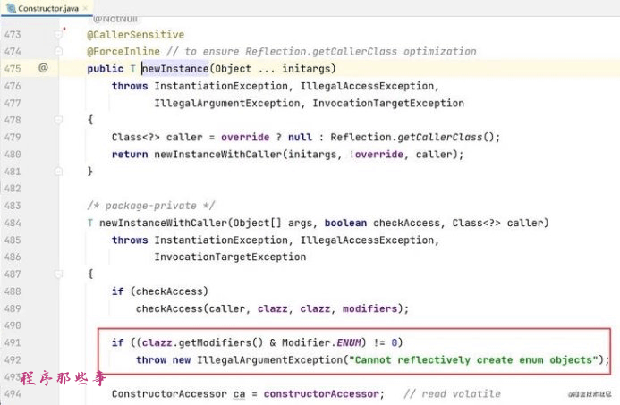 ⽤来确保类只有⼀个实例。 Joshua Bloch 在 Effetive Java 中建议到,还有 ⼀种⽅法就是使⽤枚举。