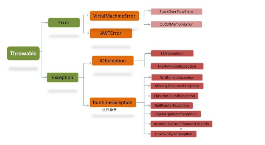 这些错误是不受检异常,非代码性错误。因此,当此类错误发生时,应用程序不应该去处理此类错误。按照Java惯例,我们是不应该实现任何新的Error子类的!