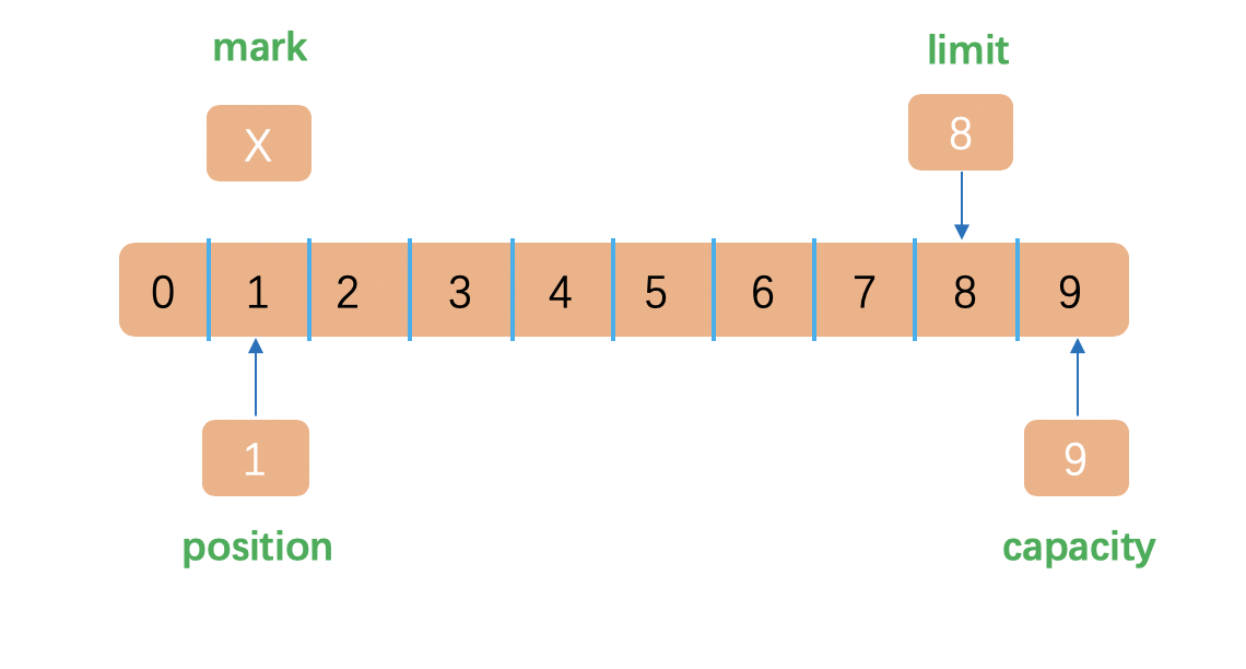 Mark表示的是历史index,当我们调用mark方法的时候,会把设置Mark为当前的position,通过调用reset方法把Mark的值恢复到position中。
