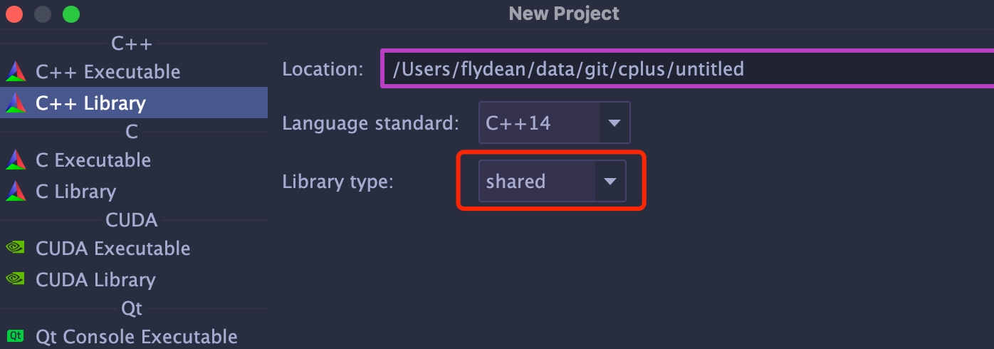 这里我们使用JetBrain公司的Clion开发工具,首先创建一个c++的项目: