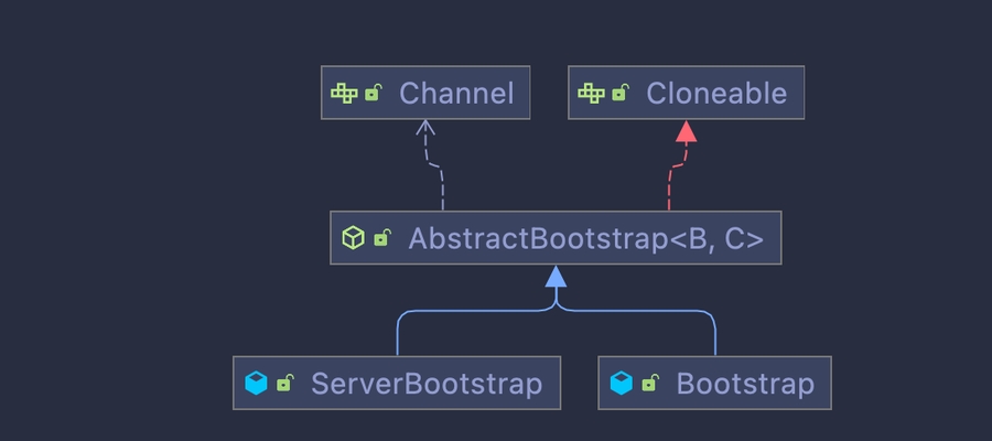 可以看到Bootstrap和ServerBootstrap都是继承自AbstractBootstrap,而AbstractBootstrap则是实现了Cloneable接口。