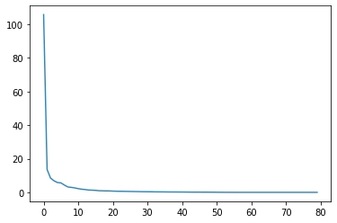 如果将s用图像来表示,我们可以看到大部分的奇异值都集中在前的部分: