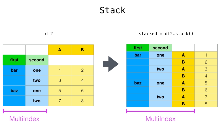 Stack是对DF进行转换,将列转换为新的内部的index。