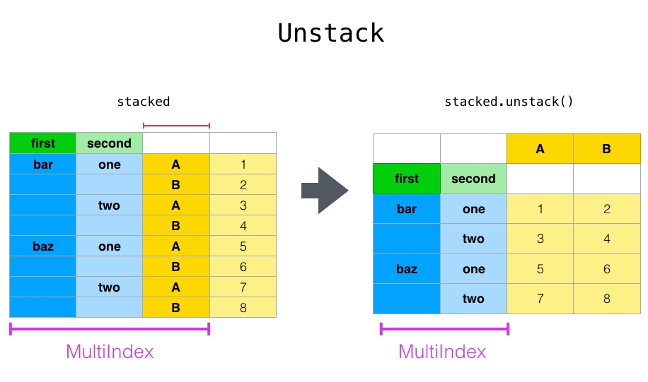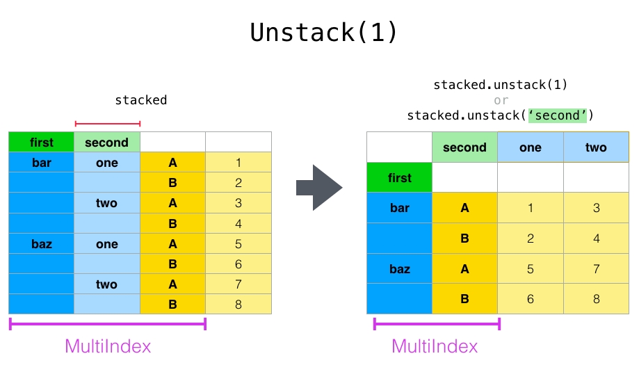 unstack是stack的反向操作,是将最内层的index转换为对应的列。
