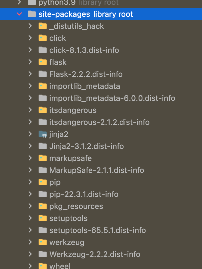 安装完毕之后,你可以在python项目site-packages里面找到flask对应的依赖包: